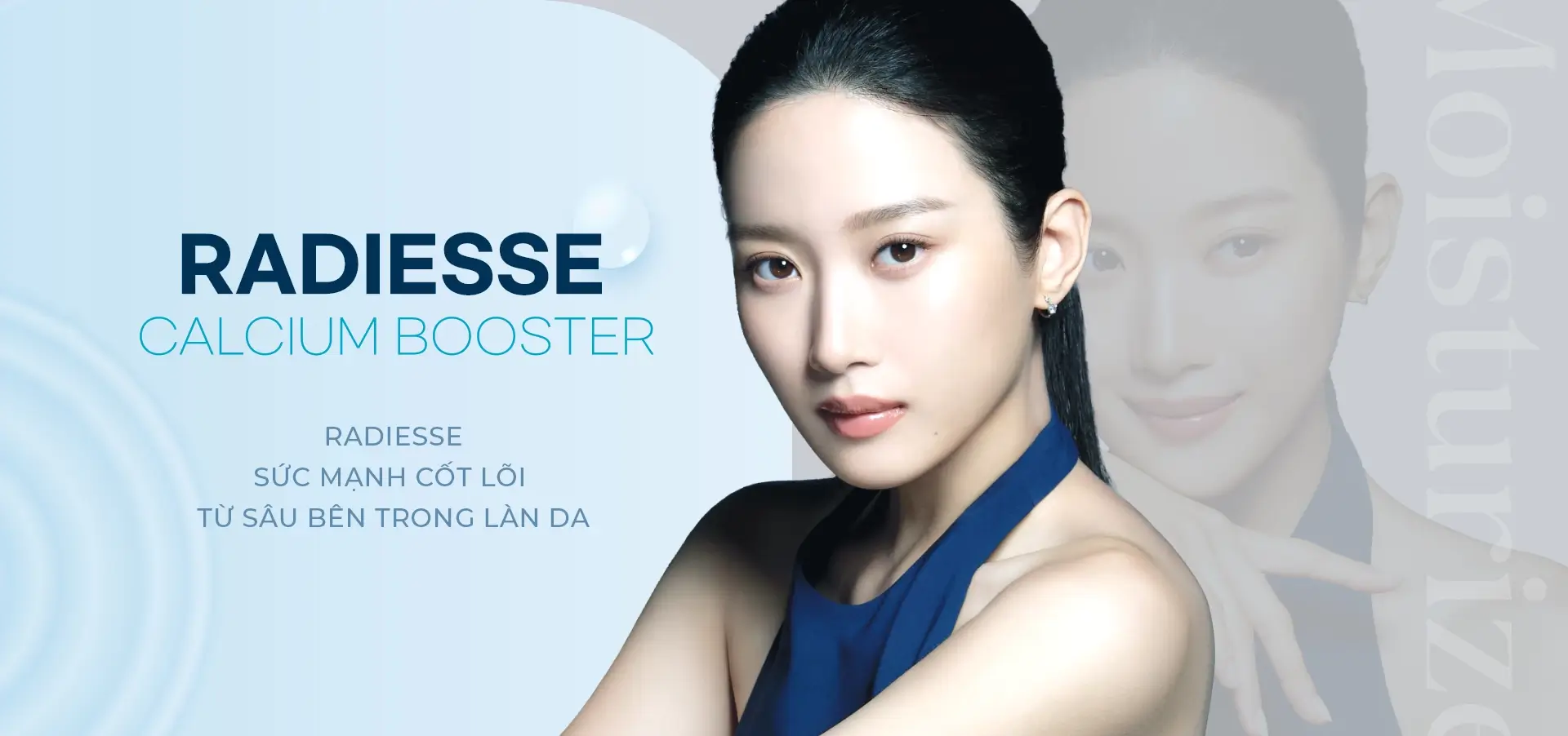 Thành phần chính của Radiesse là Canxi Hydroxylapatite (CaHA), giúp kích thích hoạt động của các nguyên bào sợi, từ đó thúc đẩy sản sinh Collagen mới.