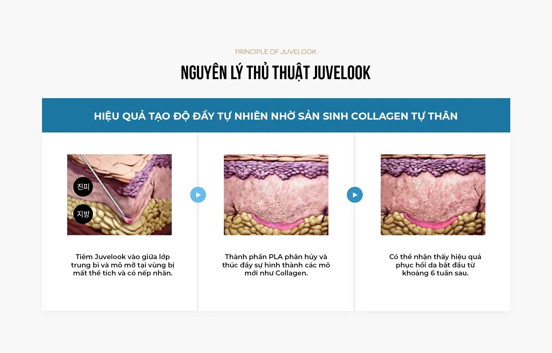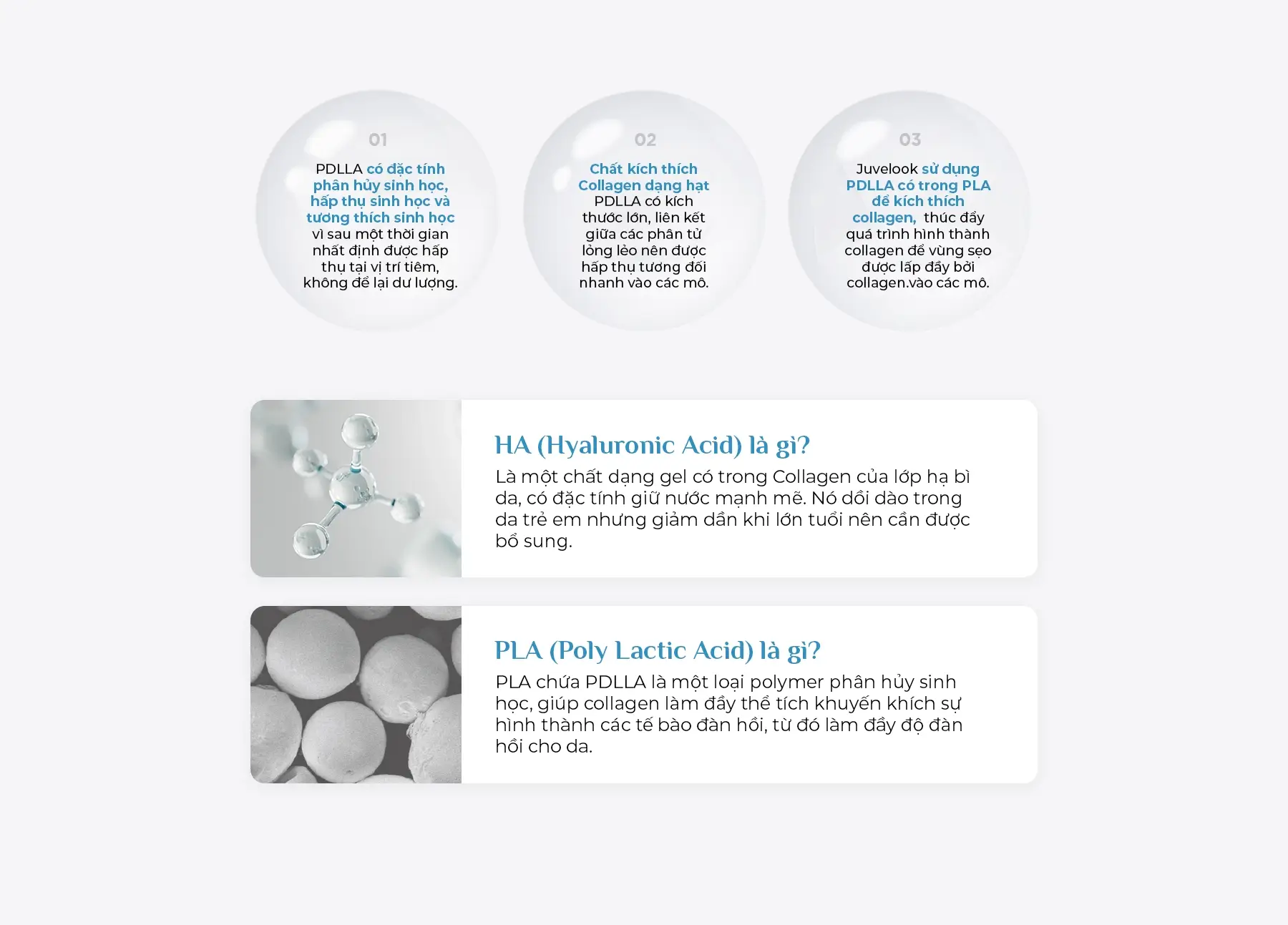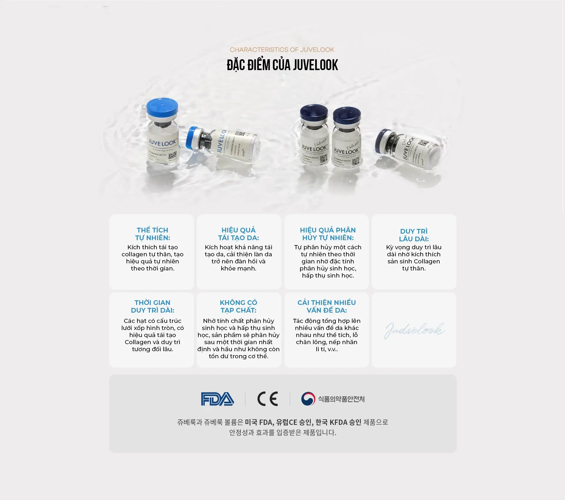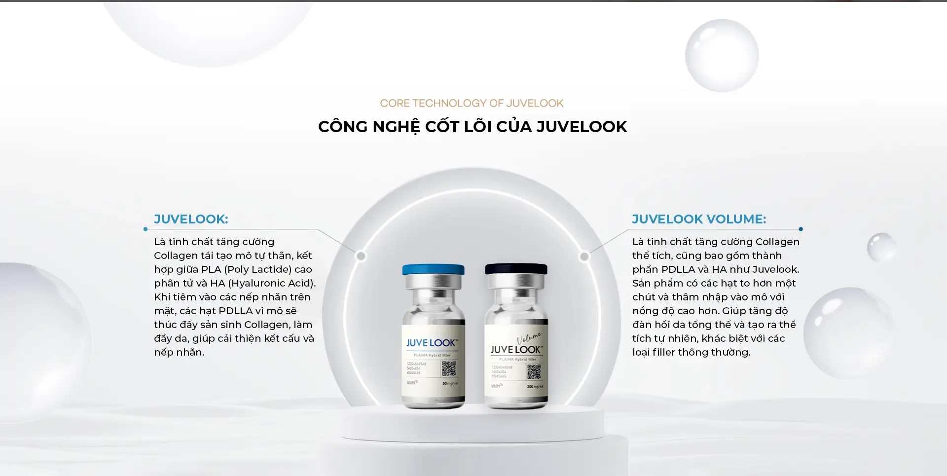 Juvelook là tinh chất tăng cường Collagen tái tạo mô tự thân, kết hợp giữa PLA cao phân tử và Hyaluronic Acid (HA) có trong mô da người. Khác với các loại filler khác có hiệu quả làm đầy ngay sau khi tiêm, Juvelook thúc đẩy sản sinh Collagen tự thân để tạo ra thể tích tự nhiên, đồng thời có hiệu quả cải thiện độ đàn hồi da, nếp nhăn li ti và kết cấu da.